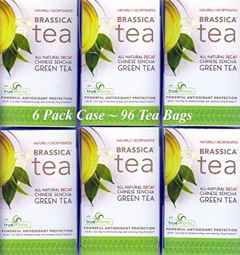 Brassica Tea with TrueBroc (Formerly SGS) antioxidant is gourmet Decaffeinated Chinese Sencha full-leaf natural green tea with 15 milligrams of SGS (sulforaphane glucosinolate) extract from broccoli added to each tea bag. It is available in 6 varieties, two of which are decaffeinated. Brassica Tea takes the world's favorite beverage (tea) and adds the natural antioxidant found in broccoli (SGS). The long-lasting activity of SGS was discovered by scientists at Johns Hopkins University Medical School while studying the health benefits of a diet rich in fruits and vegetables. Only Brassica teas are patented and licensed by Johns Hopkins University under US patents 5,725,895; 5,968,505; 5,968,567, 6,177,122 and 6,242,018. You can find Brassica Teas in four Chinese Sencha green tea flavors (Green Tea with SGS, Decaffeinated Green Tea with SGS, Green Tea with Natural Lemon Flavor and SGS, and Green Tea with Natural Orange Flavor and SGS), and two Chinese black tea flavors (Black Tea with SGS and Decaffeinated Black Tea with SGS). Our decaf teas are naturally decaffeinated and GMO and chemical free. A portion of the proceeds from the sale of all Brassica Teas will go to the Brassica Foundation for biomedical research on vegetables.