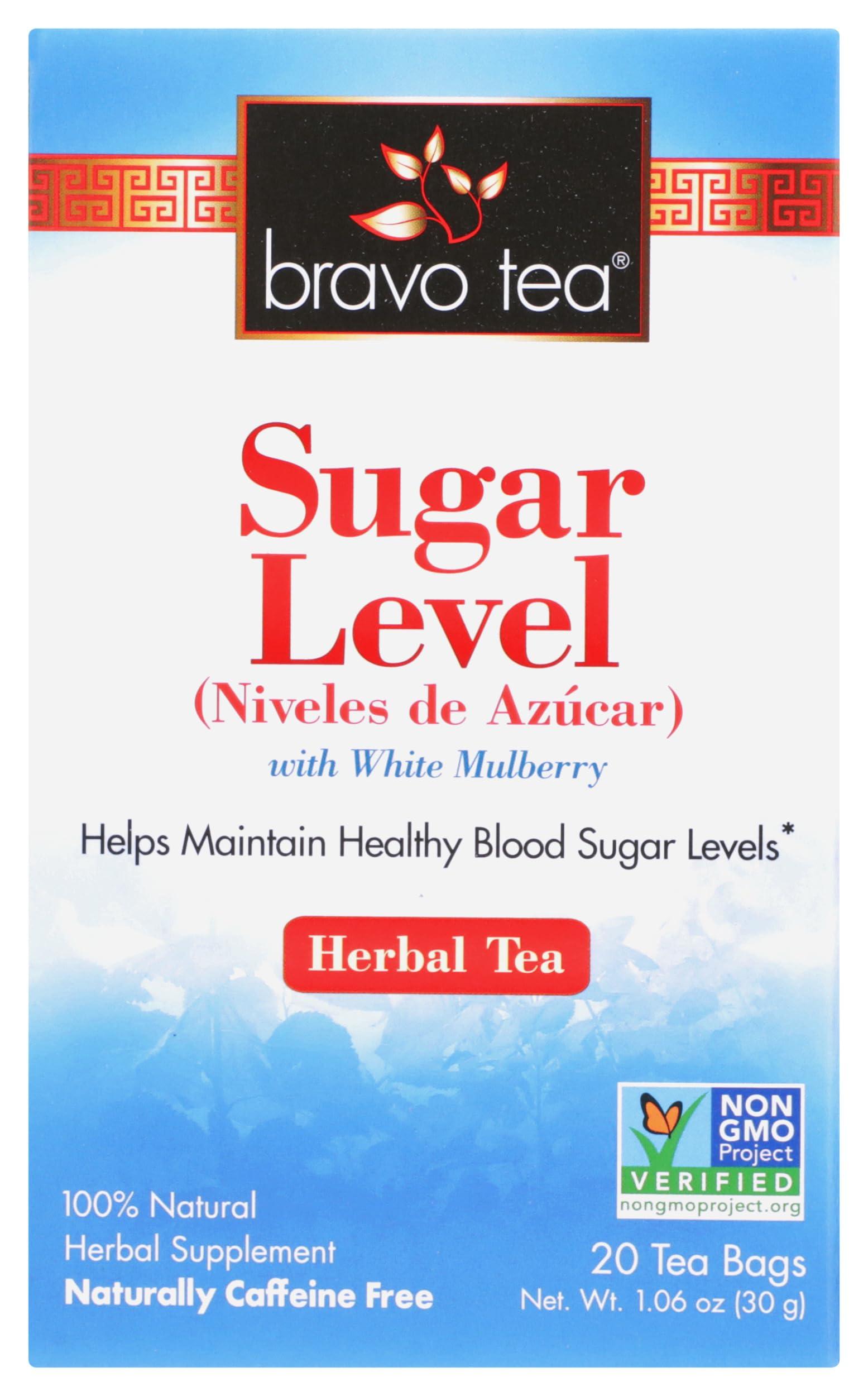 - Bravo Tea Sugar Level Herbal Tea with White Mulberry, Naturally Caffeine Free, Vegan Friendly, Gluten Free & Non-GMO, 20 Tea Bags (Pack of 6)