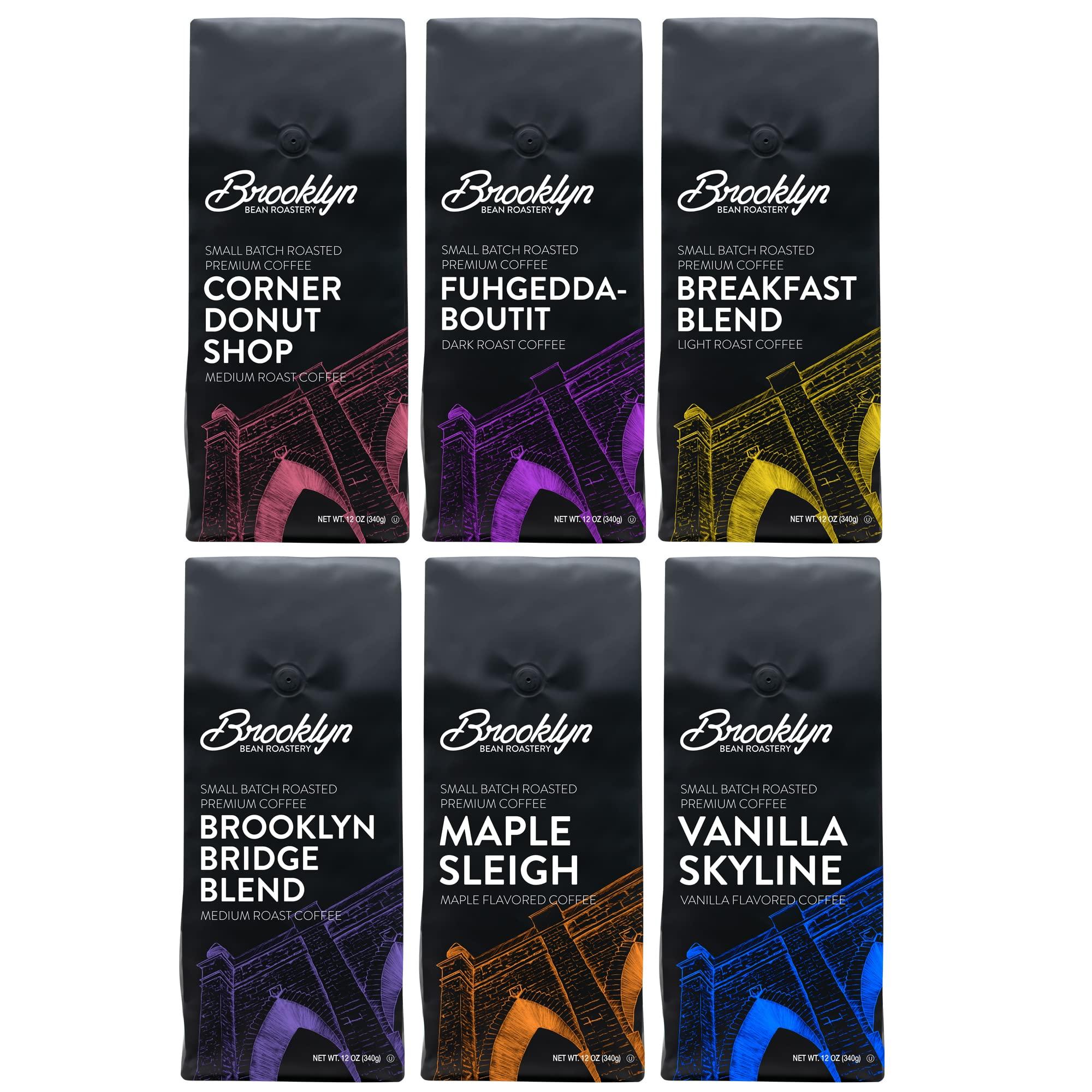 Brooklyn Beans Bagged Ground Coffee Variety Pack Light Medium Dark Roast and Flavored Assorted Gift Sampler 12 Oz Pack , 72 Ounce, (Pack of 6)