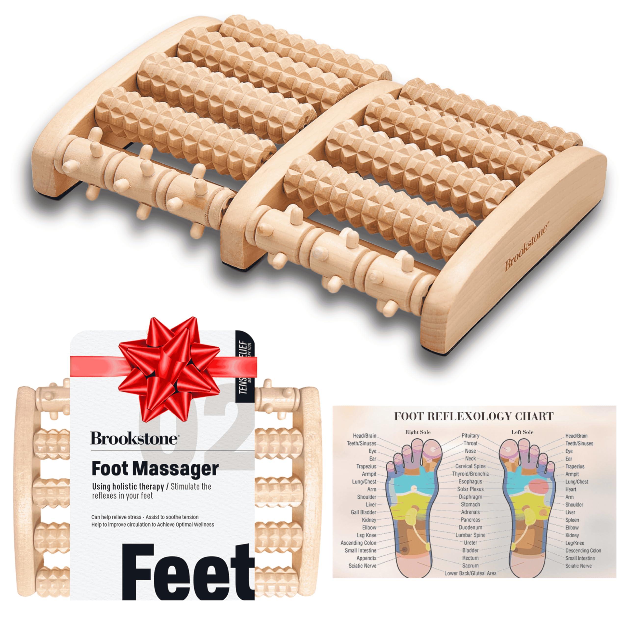 - Complete Foot Wellness: Experience enhanced circulation & optimal wellness with the Brookstone Wooden Foot Massager Roller. Crafted from sturdy wood, feet roller wood effectively alleviates plantar fasciitis symptoms, relieving sore, cramped, and tired feet. Treat yourself to soothing relief and bid farewell to the day's stress with this luxurious wooden rolling massager.