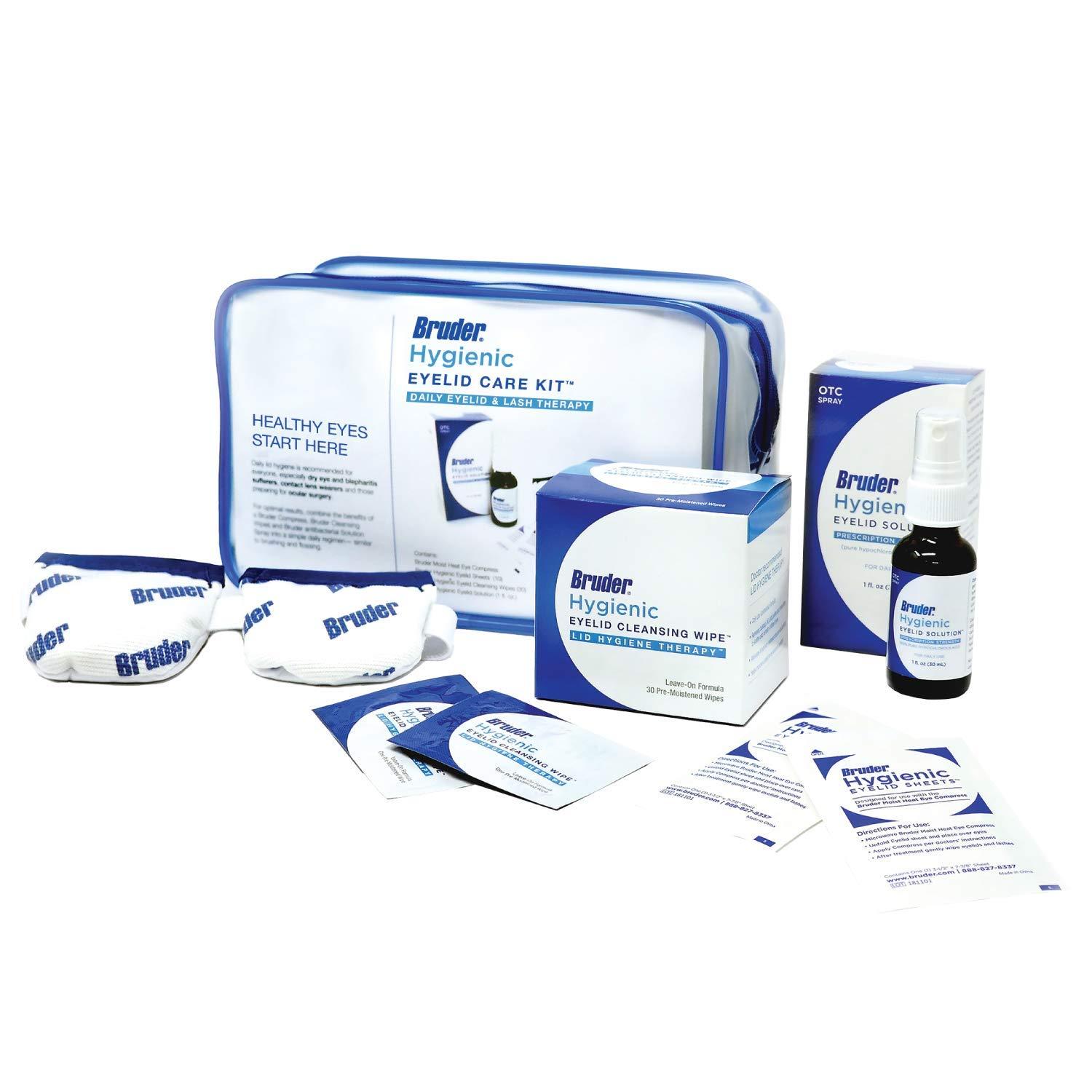 - EYE HEALTH PACKAGE: Hygienic Eyelid Care Kit that contains the Bruder Moist Heat Eye Compress, 10 Hygienic Eyelid Sheets, 30 Eyelid Cleansing Wipes, and 1 fluid ounce of Hygienic Eyelid Solution