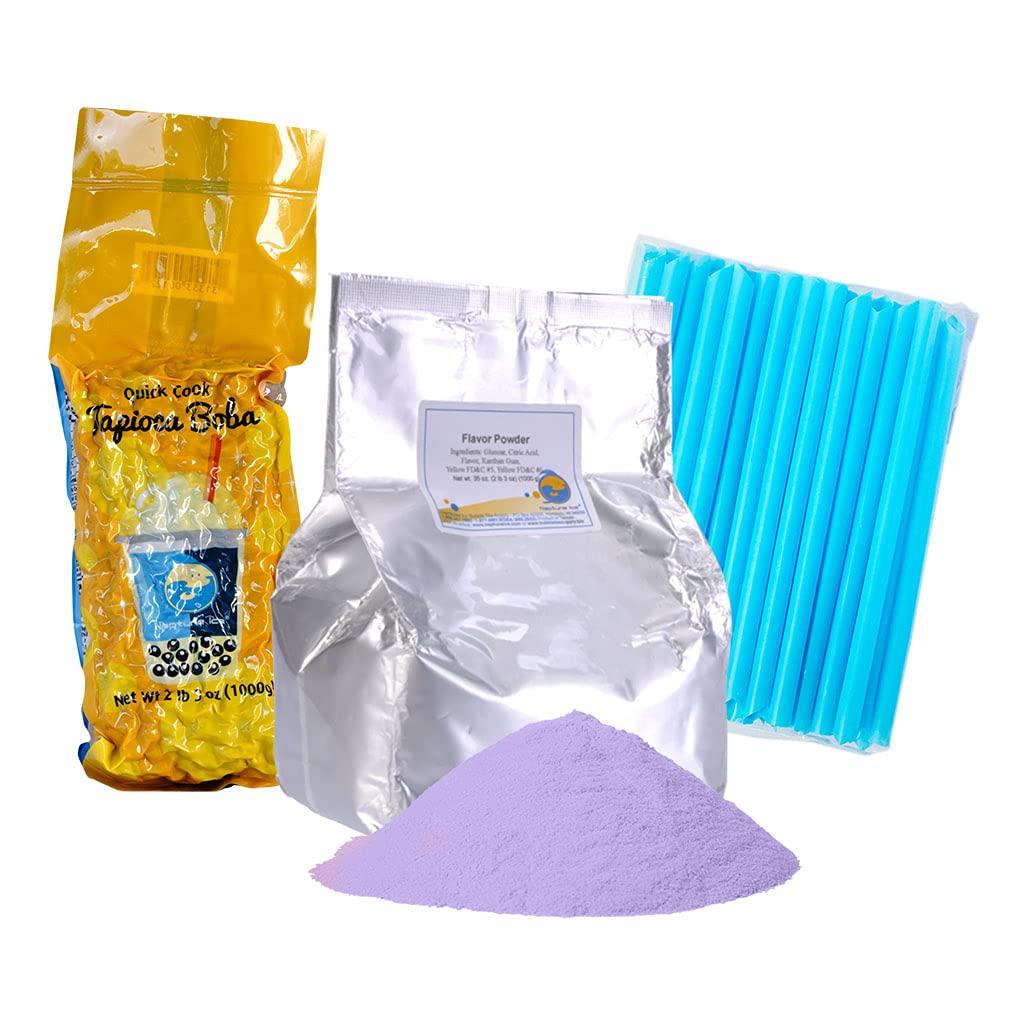 2.2 taro, 2.2 black tapioca, 1 bag straws