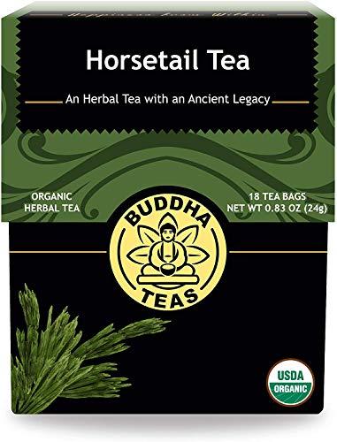 Horsetail is considered a living fossil because its really old! This beneficial tea boasts a smooth, earthy taste. Horsetail tea optimizes urinary tract health, Supports hair growth, and bone development, and is a natural source of silica, B vitamins, potassium, Malic acid and antioxidants. This organic tea is made without additives, contains no GMOs, and is packed in bleach-free tea bags, so you can feel great about enjoying a cup of tea any time of day! Organic Horsetail tea needs to steep for 4-8 minutes in fresh water heated just below boiling good. To extract the full flavor and optimum benefits, cover the cup while it Steeps. Remove the tea bag, and enjoy! At Buddha Teas, we start with a philosophy of living in harmony with nature, not using it for profit, which is why our teas are crafted without artificial or natural flavorings, using only fresh organic or sustainability wild-harvested ingredients. Our boxes are made from 100% recycled material, making our teas as kind to the environment as they are to you.