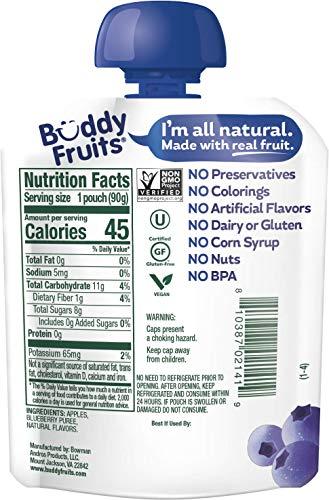 Buddy Fruits Snacks To Go Blueberry Unsweetened Applesauce 3.2oz Pouch (18pk) Gluten-Nut-Dairy-Preservatives-BPA Free, Non GMO, Kosher