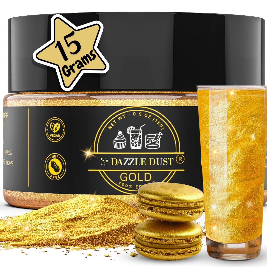 - EDIBLE GLITTER FOR DRINKS: Drink Glitter Edible Dust Gives shimmer to sweets, cake decorations with gold dust bring luster, Edible Cake Decorating Supplies, edible gold glitter, Edible drink glitter gold highlighter dust for cakes