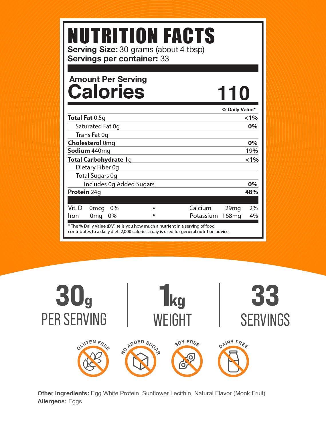 - Maximize your Potential: Enhance your active lifestyle with our Egg White Protein powder, a lactose free protein powder, designed to support your strength and performance goals. Each serving delivers a substantial 30 grams dose, catering to both fitness enthusiasts looking to push their limits.