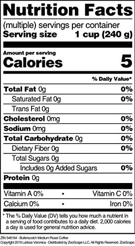 Our Butterscotch Medium Roast coffee is a luxurious, naturally flavored, medium roast coffee with Almonds that you can enjoy hot or cold! The coffee connoisseur in you will truly enjoy the Butterscotch balanced flavor and aroma! - Ingredients: Medium Roast (whole coffee beans), Almonds and Natural Butterscotch Flavor. - Grind the desired amount of this whole coffee bean blend prior to brewing to maximize freshness and flavor! Put ground coffee into your coffee maker filter and brew. Sweeten and garnish to taste. For iced coffee, add ice and top up with cold water. - Larissa Veronica is an exclusive line of natural premium-quality products that use only the purest and finest ingredients from around the world. Larissa Veronica is hallmarked by the highest possible standards of purity, stability and freshness. All of our products are prepared with the highest elements of quality control, from raw materials through the entire manufacturing process, up to and including the moment that the bottles or bags are sealed for freshness and shipped out to you. Our highest possible standards are certified by independent laboratories and backed by our personal guarantee. - Larissa Veronica strives to make all products affordable and we are constantly researching the market to maintain our affordability and to look for new ways to serve you and the ones you love. Larissa Veronica has become a trusted household name for many families. - Larissa Veronica is packed in tamper-proof, food-grade, recyclable containers. - ZooScape is proud to be the exclusive distributor of all Larissa Veronica spices, snacks, foods and ingredients in the United States, Canada and around the world. - Store in an airtight dark container in a dry and cool location. Product of U.S.A.