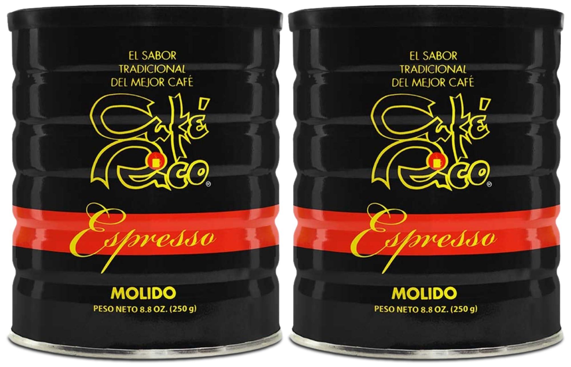 - Two 8.8 OZ printed cans of Caf Rico Espresso ground coffee
