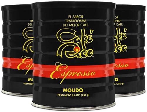 - Three 8.8 OZ printed cans of Caf Rico Espresso ground coffee