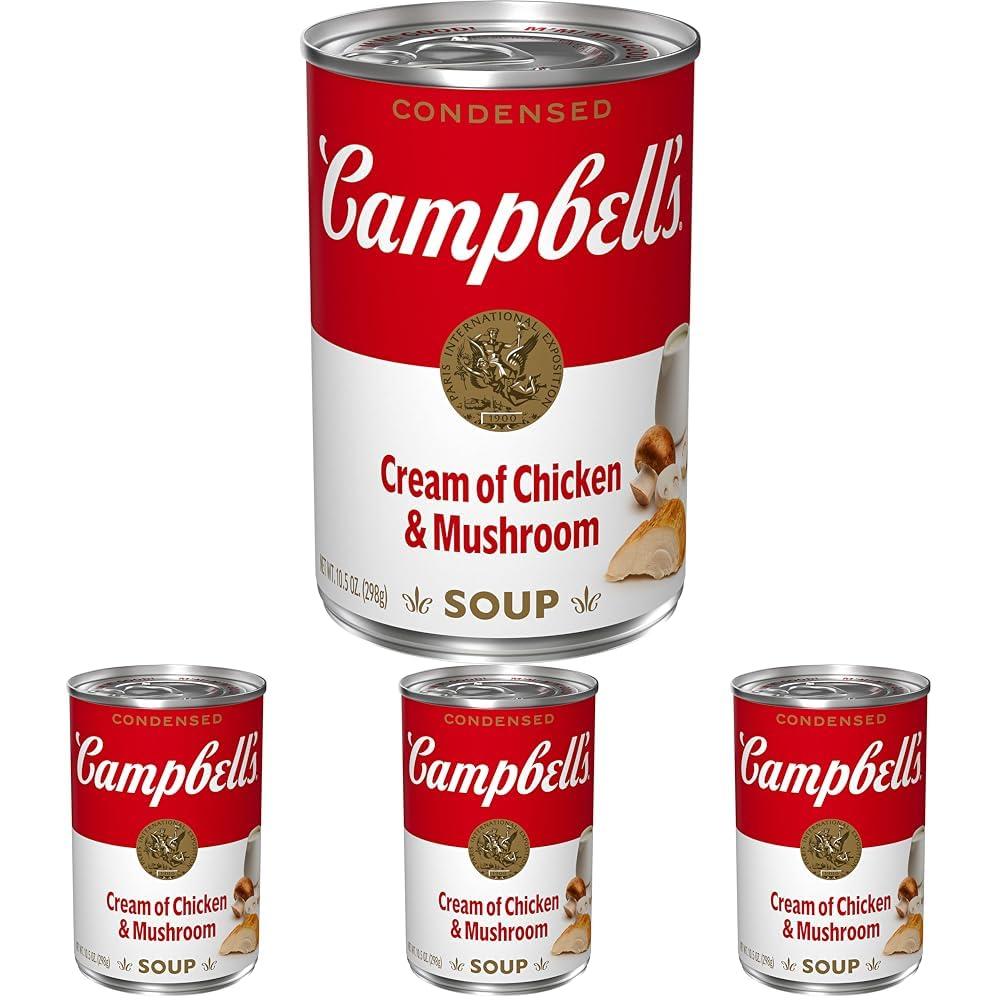 Add rich, creamy flavor to your favorite dishes with Campbell's Condensed Cream of Chicken and Mushroom Soup. This creamy mushroom and chicken soup is crafted with farm-fresh cream, high-quality chicken stock, mushrooms, and tender chicken meat with no antibiotics to provide a deliciously smooth foundation to any recipe. Use it as the hero ingredient in recipes like Quick Creamy Chicken and Noodles, or substitute it for roux or bechamel as a sauce starter. Campbells convenient canned soup is a year-round pantry staple and a must-have for creating something quick and easy. It's also delicious on its own, topped with fresh herbs or a drizzle of olive oil, or enjoyed with a sandwich or salad. Simply mix the condensed soup with 1 can of water or milk and microwave on high for 3 to 3.5 minutes in a covered microwave-safe bowl, or heat in a pot on the stove, stirring occasionally. Each 10.5 oz recyclable can contains about 2.5 servings of microwave soup and features a non-BPA lining. From Cream of Chicken to Chicken Noodle and everything in between, Campbell's makes delicious soups in flavors your family knows and loves, with quality, farm-grown ingredients in every can. M'm! M'm! Good!