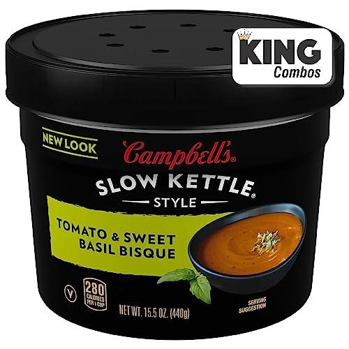 Made with Patience, Not Preservatives Carefully crafted by our experienced chefs, Campbells Slow Kettle Soups are inspired by meals at your favorite neighborhood restaurants. Theyre simmered to perfection with delicious authentic ingredients, unique flavors, creative culinary techniques, and no preservatives. Enjoy restaurant-style in the comfort of your home or at your convenience. Mouth-Watering Flavors Its time to raise the bar at the dinner table. And with Campbells Slow Kettle Soups, its easy to do with a lineup of soups like Creamy Broccoli Cheddar Bisque, Fiesta Chicken Lime Tortilla, Andouille Sausage Jambalaya, and Kickin Crab & Sweet Corn Chowder. The Simple Way to Savor the Good Stuff It doesnt take much time to enjoy soup thats been elevated to an art form. Our convenient, microwavable bowl makes it easy to enjoy a Campbells Slow Kettle Soup lineup with carefully selected ingredients think Angus beef, fresh cream, portobello mushrooms, and Madeira wine. Then throw in original twists by culinary masters and slow cook them to perfection to capture everything we love about food. We Put in the Best and Left Out the Rest Campbells Slow Kettle Soups taste great because of all the authentic ingredients our chefs put into them. This is a lineup of restaurant-quality soups without any preservatives.