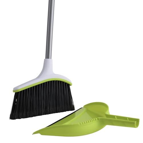 Casabella Broom & Dustpan Set, 44-Inch Angled Broom with Snap-On Dustpan, Durable Bristles, Innovative Dustpan, Convenient Storage - Perfect for Tile, Wood, and Laminate Floors