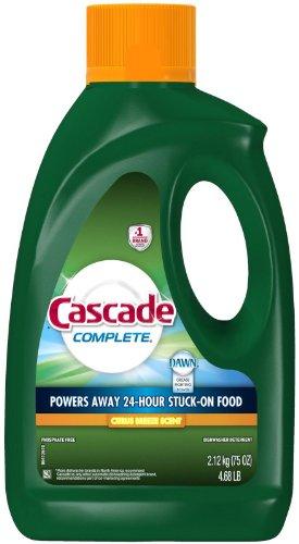 There's no pre-wash needed with Cascade Complete Gel. It powers away stuck-on food, which means you can skip a step at the sink and still get a complete clean. And it's formulated with the grease-fighting power of Dawn. Trust your dishes to Cascade Complete Gelyour new shortcut in the kitchen and the #1 recommended brand in North America.* *Recommended by more dishwasher brands in N.A. vs. any other automatic dishwashing detergent brand. Recommendations as part of co-marketing agreements.; No pre-wash needed, powers away stuck-on food; Gel formulated with the grease-fighting power of Dawn; Pure Rinse Formula rinses cleanly away; Lemon Burst Scent; Also available in Powder and ActionPacs; Cascade Complete Gel Lemon Burst Dishwasher Detergent