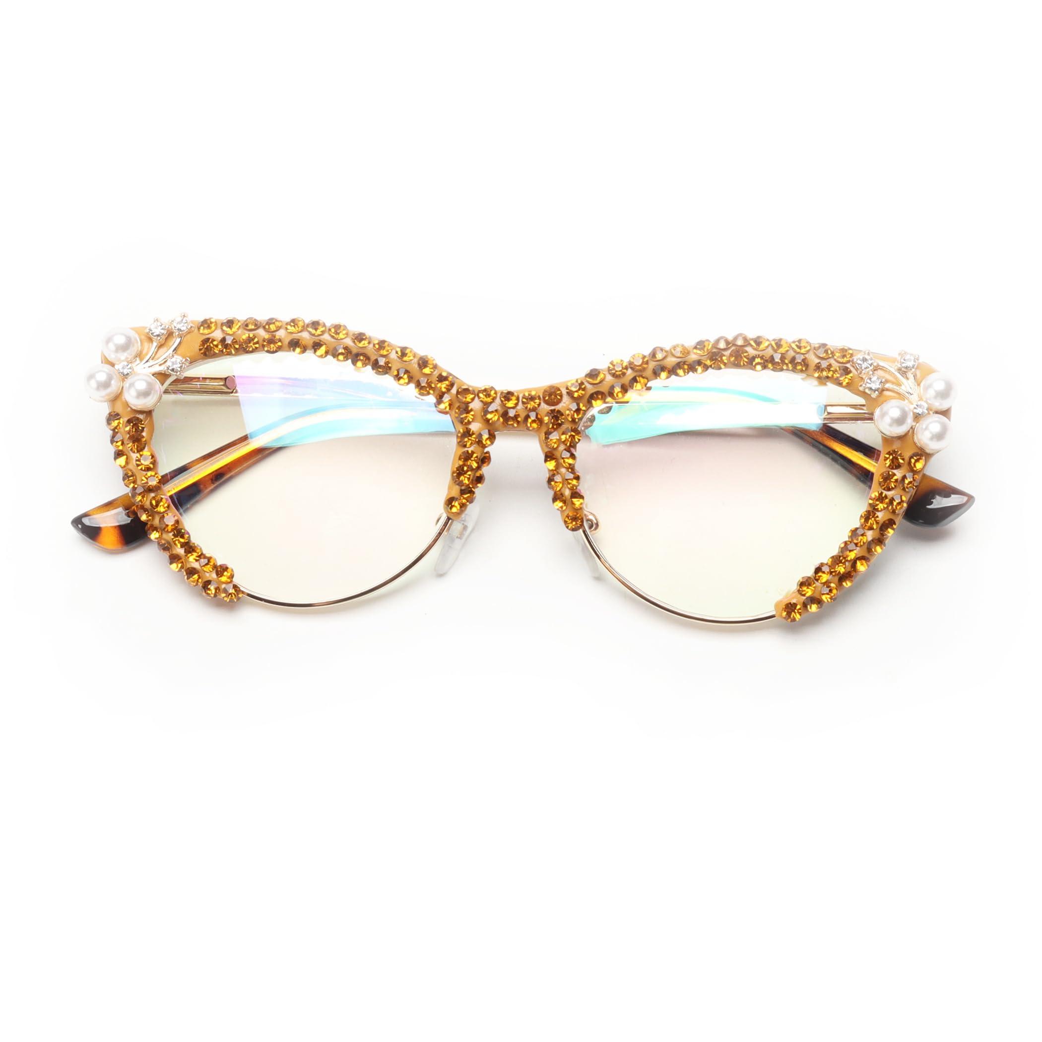 - Super pretty and shiny. make rhinestones reading glasses shine like a diamond. Unique design makes you more charm and attractive,decorated with fashion studded rhinestone,bling sparkle