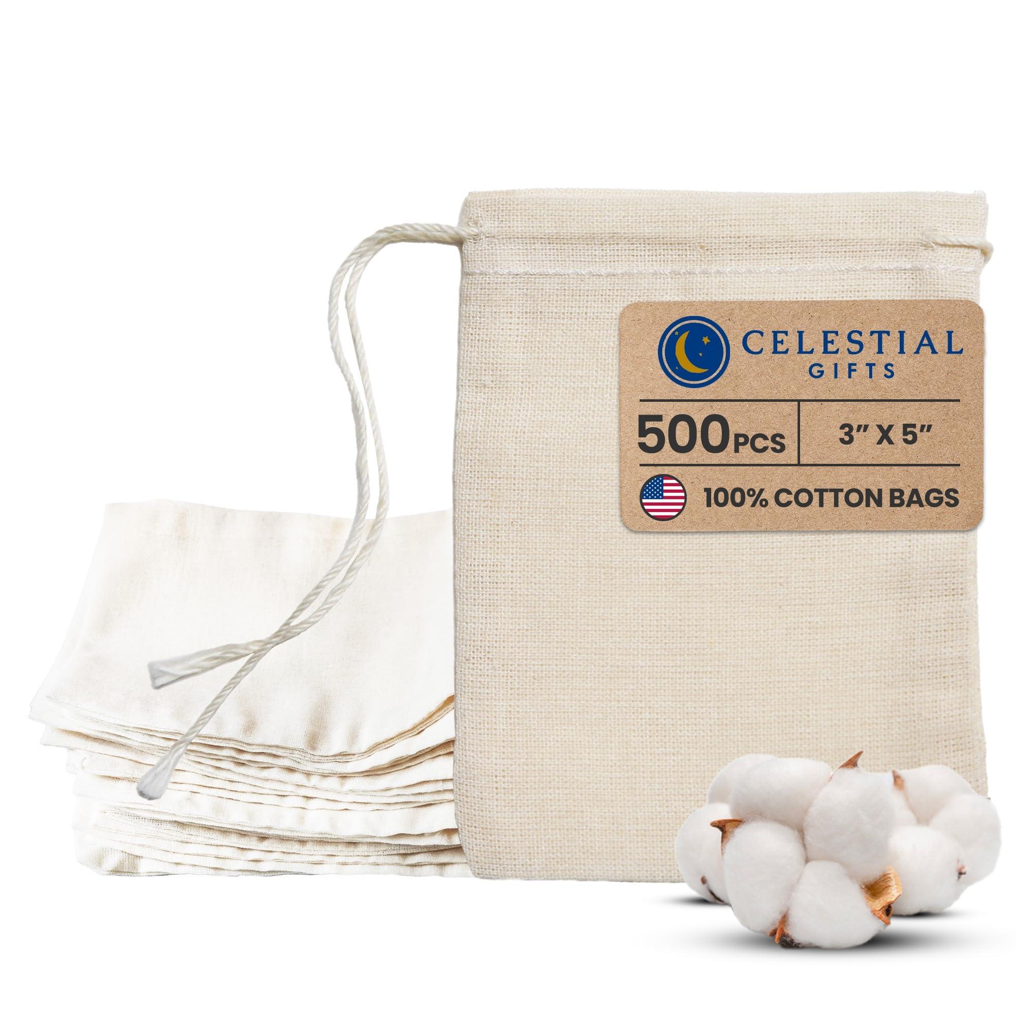 - LONG-LASTING SUPPLY FOR ALL YOUR NEEDS: Celestial Gifts provides a generous supply of natural-colored Cotton Muslin Bags with Drawstrings, proudly made in the USA. Available in bulk, these multipurpose bags cater to all your storage and gifting needs. Customize them to create unique gift bags, tea bags, spice bags, or cloth gift bags. Embrace the abundant quantity and exceptional quality of our reusable cotton muslin bags.