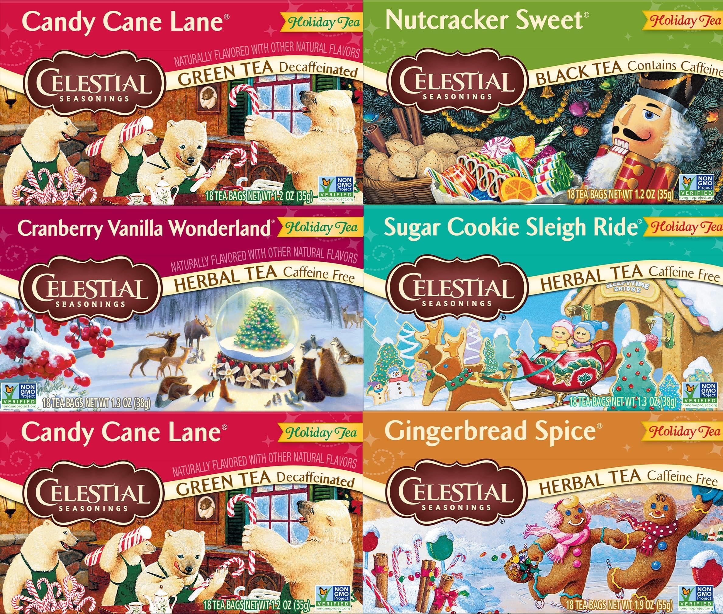Celestial Seasonings Celestial Seasonings Holiday Tea Sampler Herbal Variety Pack, Caffeine Free, 18 Tea Bags Box, (Pack of 6)
