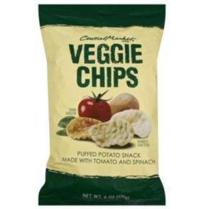 Central Market Veggie Chips are cooked in expeller - pressed oil where they form the air pockets that create their light, crispy texture. They are dusted lightly with sea salt to compliment the flavor of the potato, spinach or tomato infused chip. They have 30% less fat when compared to regular potato chips. Enjoy them as a stand alone snack or with your favorite salsa or dip. Only 7 grams of fat per serving!
