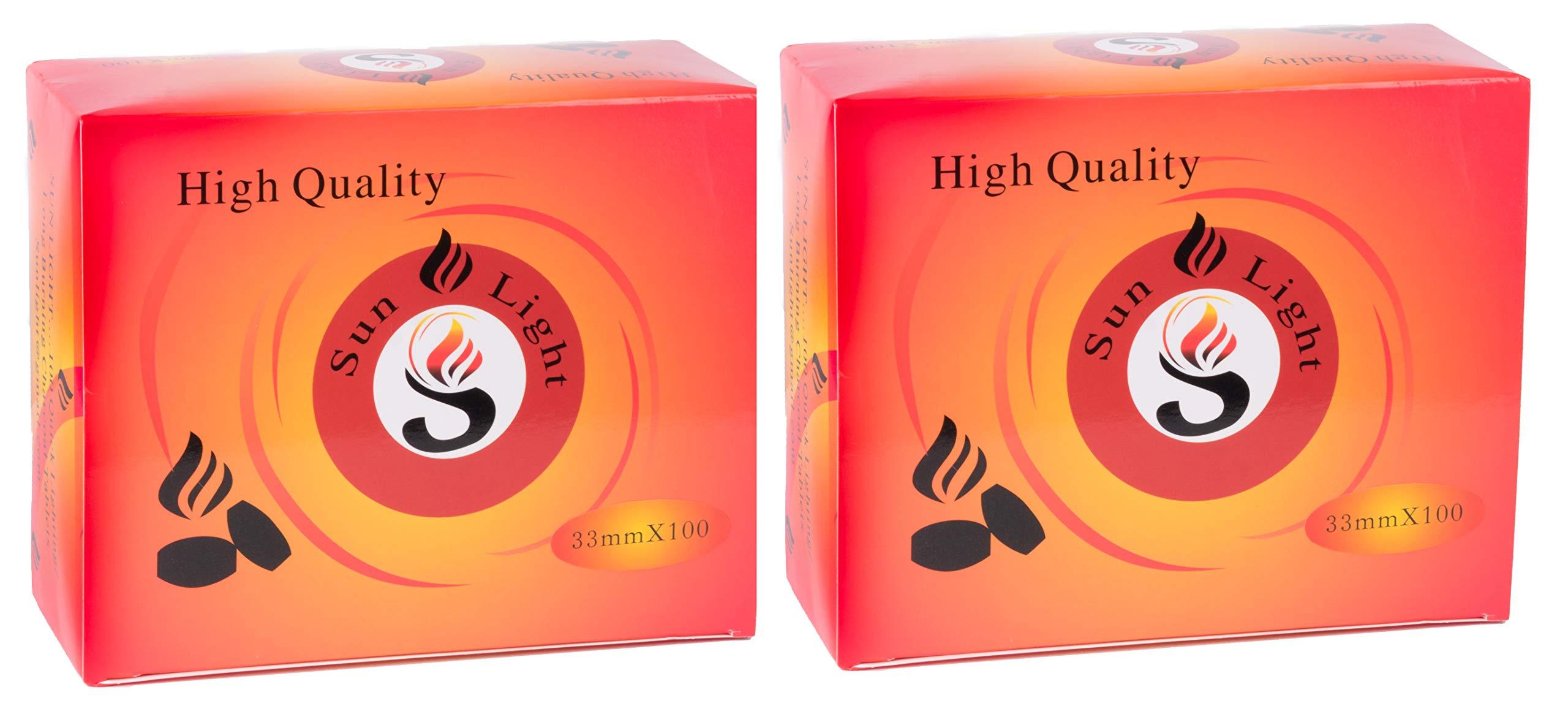 Sunlight High Quality Premium Hookah Coal - 100 Coals Per Box, 10 Rolls of 100 Charcoal Tablets - 33mm (200)