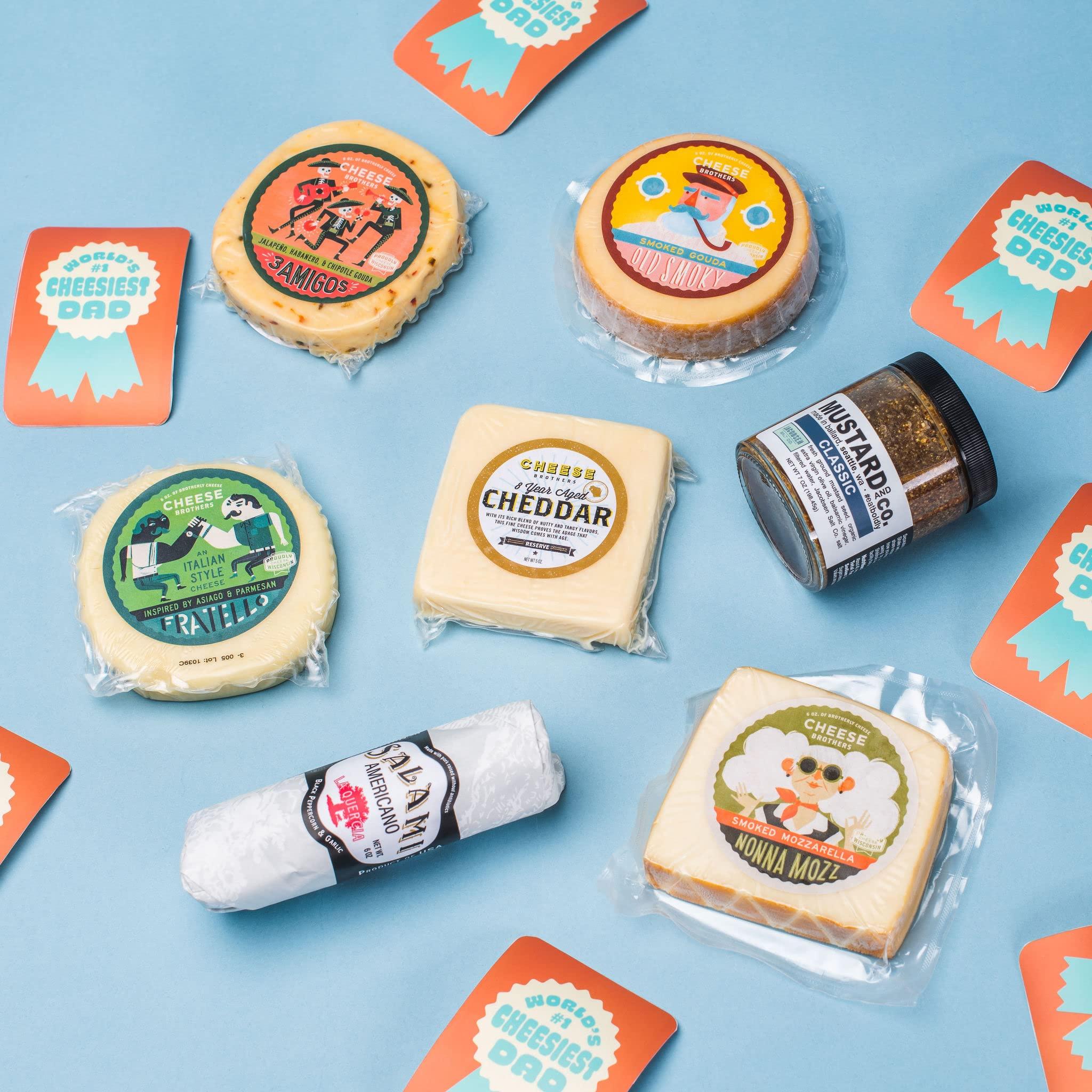 Cheese Bros. World\'s Cheesiest Dad Father\'s Day Gift Box | Wisconsin Made | Includes Italian Fratello, Gouda, Aged Cheddar, Classic Mustard and Artisan Salami | Great Food Gifting Idea!