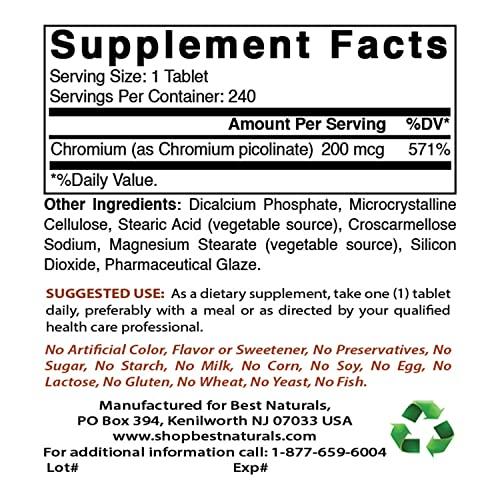 - 200 mcg of Chromium Picolinate per Tablet - 240 Tablets per Bottle., 1000 mg per Tablet / 240 Tablets per bottle