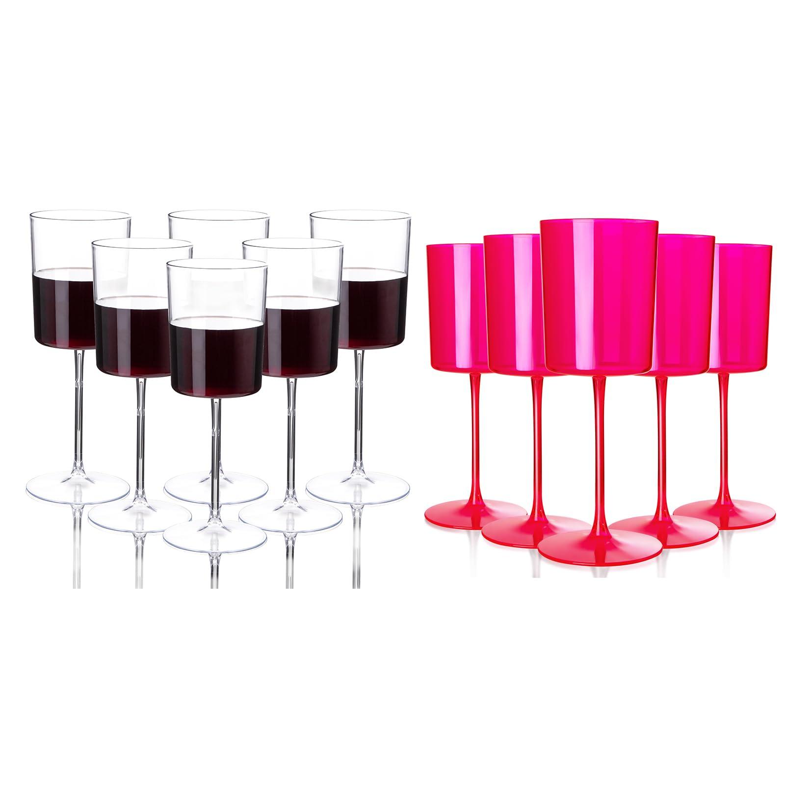 - The Perfect Gift: These hot Pink Plastic Wine Glasses are sophisticated, glamorous and luxurious. They will make a unique gift that your family and friends are guaranteed to impress! Celebrate life's most memorable moments with a disposable wine glasses for parties - weddings, anniversaries, mother's day, a costume reception or an engagement party that will surprise you beyond your wildest expectations.