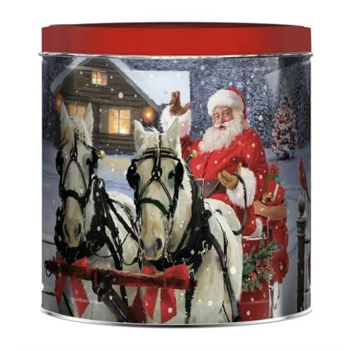 Classic Collectible Gourmet Assorted Holiday Popcorn Tins With Caramel, White Cheddar, and Butter Popcorn Assorted Holiday Designed Tins