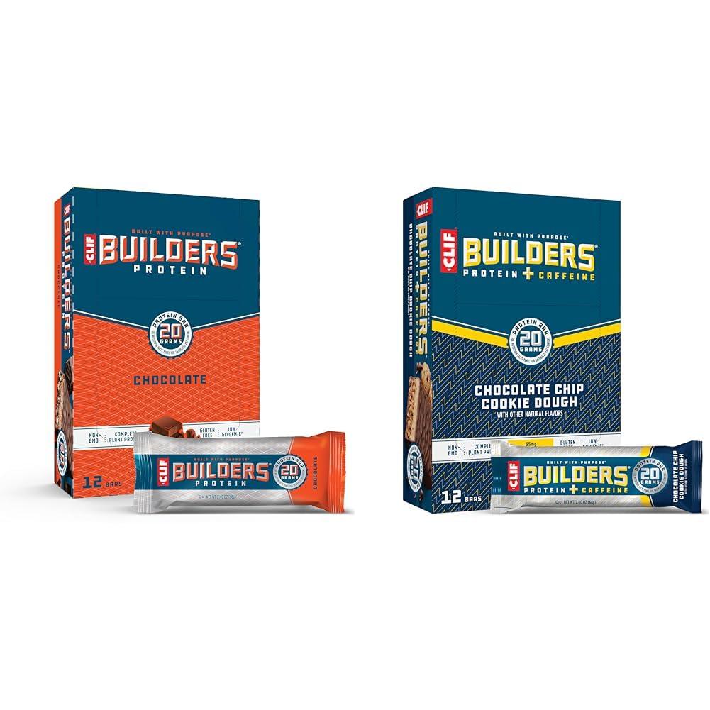 - Product 2: HIGH-QUALITY INGREDIENTS: CLIF Builders Protein + Caffeine bars are gluten free, made with non-GMO ingredients, and low glycemic to digest slowly for prolonged levels of energy (packaging may vary)