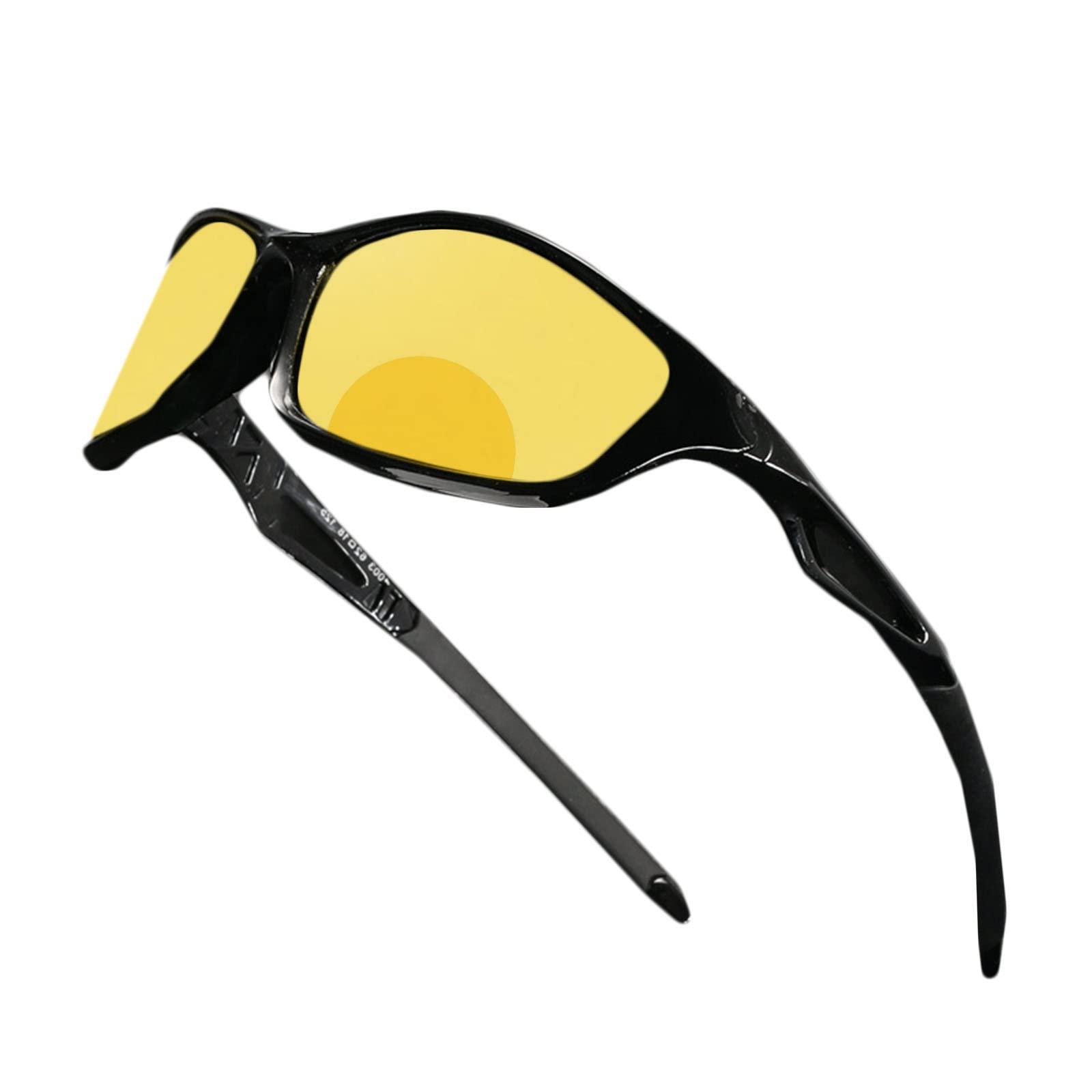 - Bifocal Lenses / Yellow Lenses for Improved Night Vision / Also Great for Daytime use / The special anti-glare lenses reduce eye strain and glare from headlights, street lights and traffic lights during wet and dark conditions / Can be worn while driving during the day or night, in your car, on your motorcycle, golfing, fishing, and all outdoor sports and activities