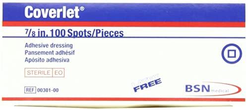 "The choice in fabric bandages", Coverlet Round spot band-Aids offer complete wound protection and comfort. The shape is perfect for when you need to cover "just a spot". Coverlet sterile spot bandages are made of a flexible fabric that is specially woven to comfortably conform to your body curves and flex with movement. The long-lasting adhesive provides a complete seal around the wound. For use on minor cuts and wounds. Latex free. Box of 100.