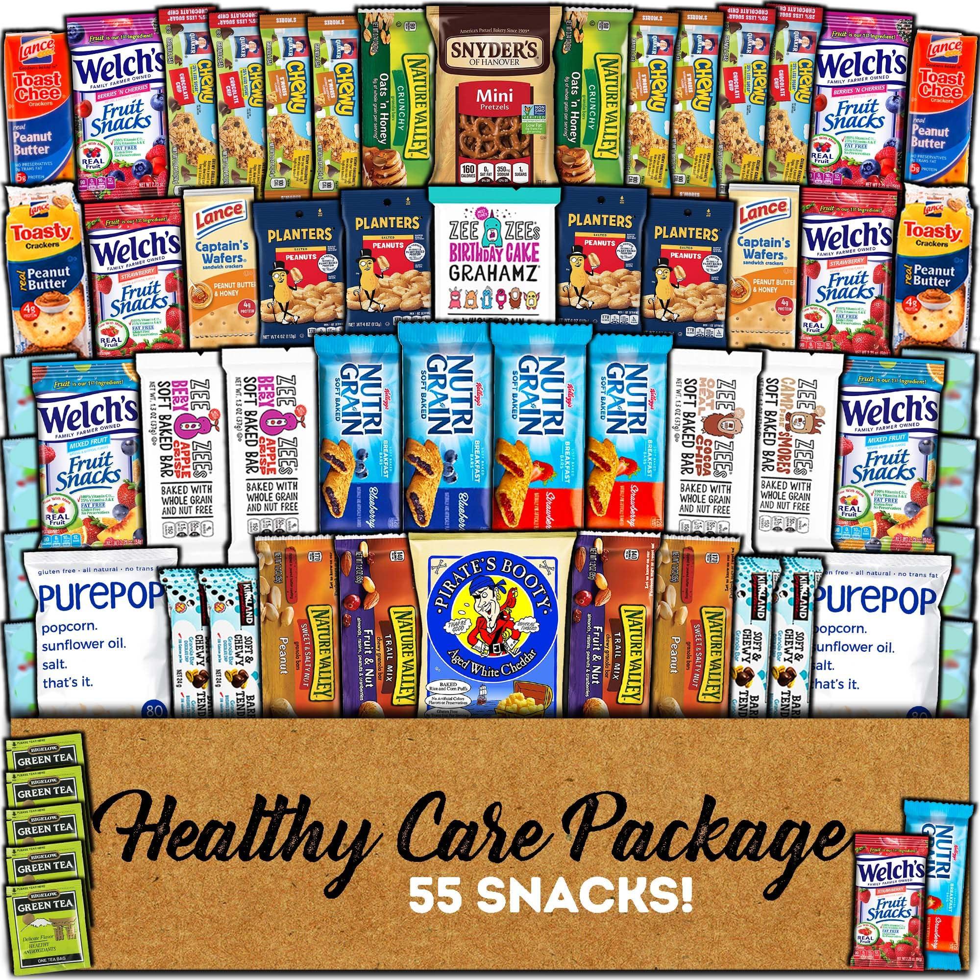 - HEALTHY SNACKS: This 55 count care package includes a mix of healthy snacks that are still sweet and savory. Best essential brands of nuts, fruit chews, bars, popcorn, gren tea. Best variety on Amazon as it includes all of your favorite individually wrapped snacks and goodies. Healthy snacks for the health conscious person. Nutritious workout fitness protein diet fit gym value fun pack. What an amazing assortment variety of Healthy, Nutritious, Delicious Snacks, Bars, and Treats!