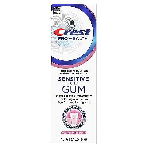 Crest Pro-Health Gum and Sensitivity Toothpaste creates a shield of protection against food & drink for lasting sensitivity relief within days* for all-day protection. The scientists at Crest designed this stannous fluoride toothpaste that starts to soothe immediately for lasting relief. It is formulated to dissolve and lift away harmful bacteria. Because if youre not taking care of your gums, youre not really taking care of your mouth. And by unleashing the power of stannous fluoride, you'll be fighting gingivitis and cavities, too. From Crest, the #1 gum toothpaste brand in America. *Sensitivity relief with twice-daily brushing.