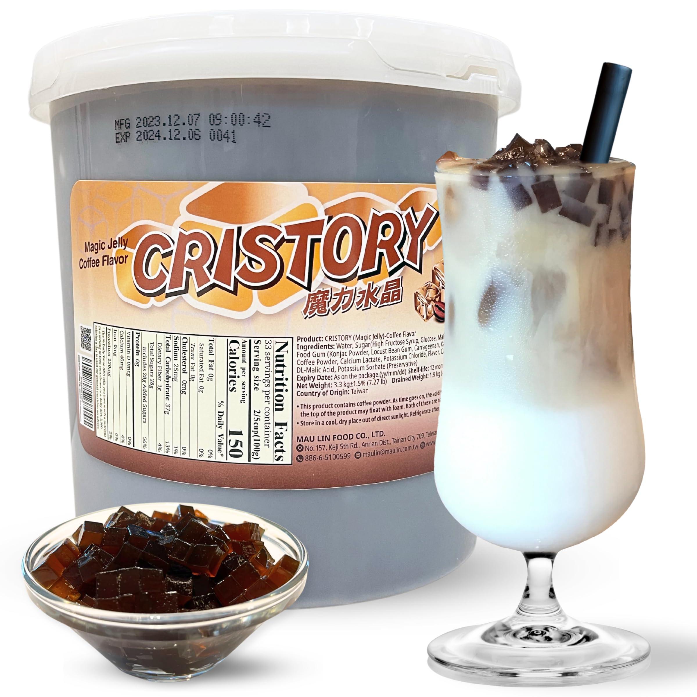 CRISTORY Coffee Flavor Magic Jelly is infused with Arabica coffee powder made using freeze-drying technology, providing a unique and rich coffee flavor. Our company, MAULIN, has been a trusted supplier of bubble tea ingredients for over two decades. Our Coffee Flavor Magic Jelly has been a favorite among professionals in the bubble tea industry since 1999. ISO22000:2005, FSSC22000, HACCP, HALAL certified.