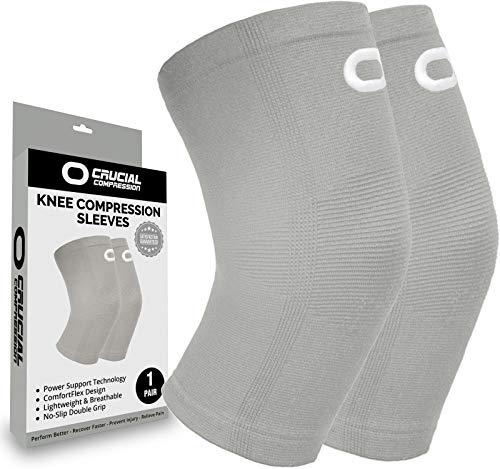 Crucial Compression Knee Sleeve (1 Pair) - Best Knee Braces for Knee Pain for Men & Women - Non-Slip Knee Support for Running, Weightlifting, Basketball, Gym, Workout, Sports