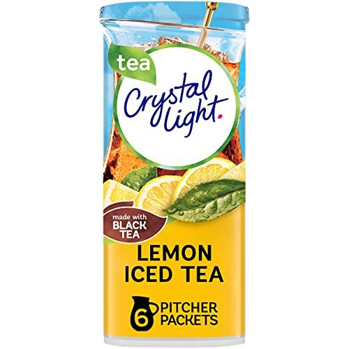 Crystal Light Naturally Flavored Lemon Iced Tea Powdered Drink Mix is a refreshing beverage you can enjoy at any time of day. With zero grams of sugar and 5 calories per serving, Crystal Light is a sweet alternative to juice and soda and has 90 percent fewer calories than leading beverages (this product 5 calories, leading beverages 70 calories), so you don't have to choose between taste and calories. It's also made with real black tea for a refreshingly smooth taste. Each pitcher packet of powdered iced tea mix in this 6 count canister is perfectly portioned to make 2 quarts or 1 pitcher of Crystal Light, so there's plenty to share with family and friends. Simply mix one packet with 8 cups or 2 quarts of water, stir, and enjoy! All the flavor and only 5 calories... just the way you like it.