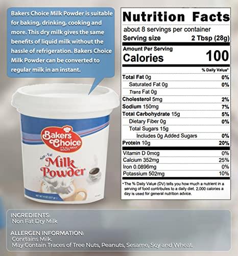 Baker\'s Choice Dairy Nonfat Dry Milk Powder - Instant Milk Powder For Baking, For Ice Cream, Coffee, Milkshakes, Desserts, and Fruit Shakes - Kosher - 8 oz. - By Bakers Choice
