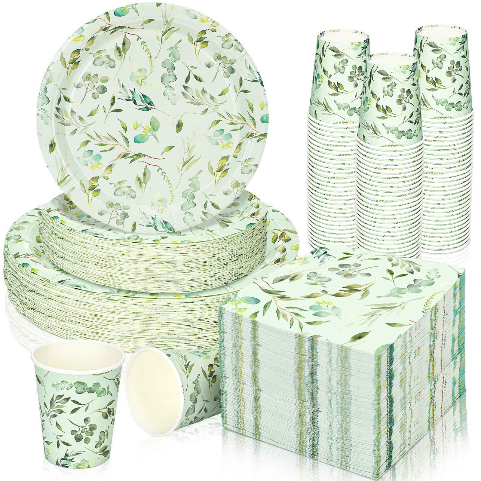 - Exquisite Design: our eucalyptus disposable party supplies set features eucalyptus patterns, and your customers will appreciate the elegant design; This party set is the nice complement to a eucalyptus themed party, and can be paired well with certain occasions or table decorations; This design is delicate and beautiful, making people feel relaxed and comfortable; We believe that your clients will appreciate beautiful and simple designs