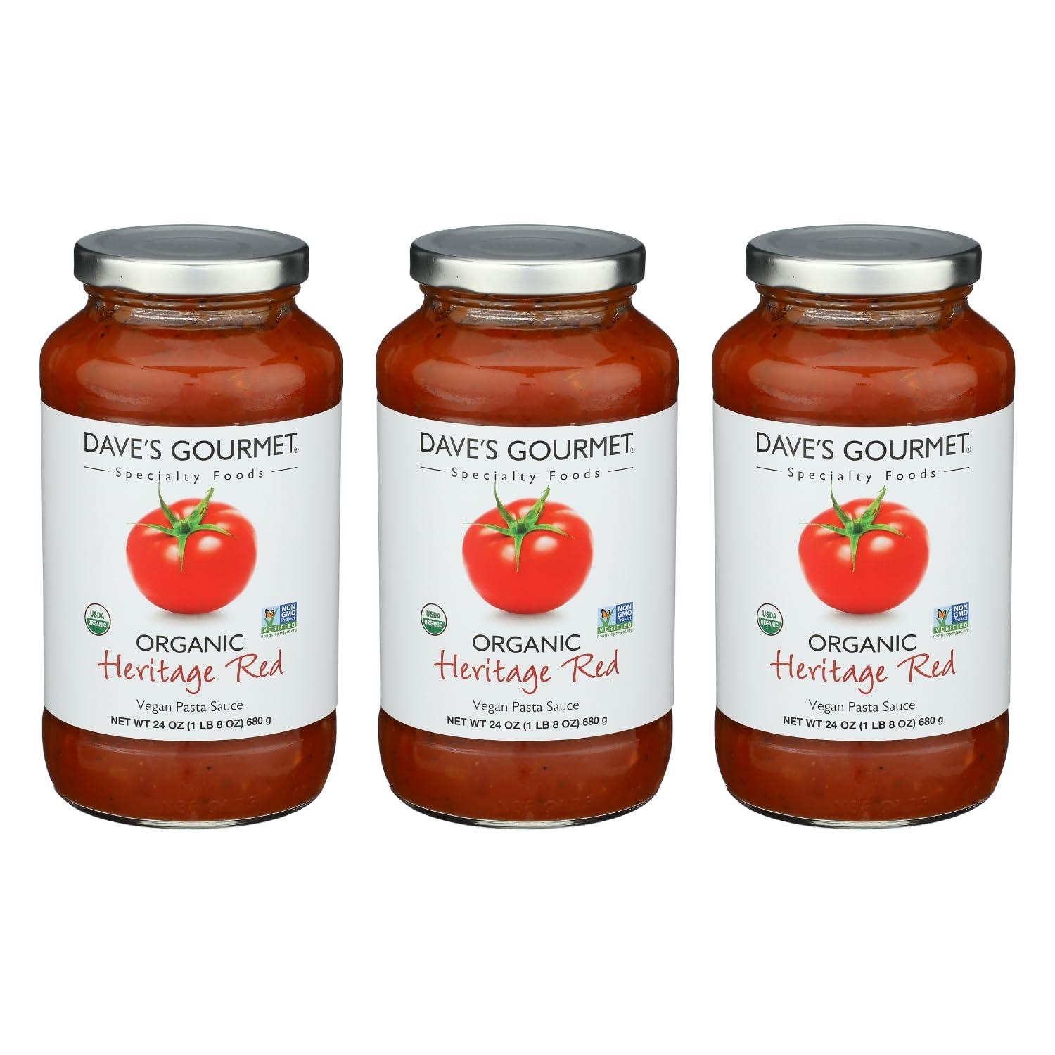 - PERFECTED RECIPE: Dave's Gourmet Organic Heritage Red Tomato Pasta Sauce is a delicious combination of organic sweet vine ripened tomatoes, premium garlic, and herbs with a hearty, satisfying flavor and texture.