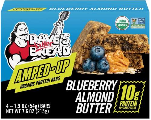 - You'll get one 4-count box of individually wrapped Dave's Killer Bread Amped-Up Blueberry Almond Butter Organic Protein Bars