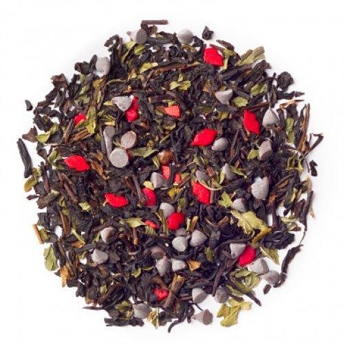 This sweet black tea is strewn with chocolate, peppermint and red candy lips.
