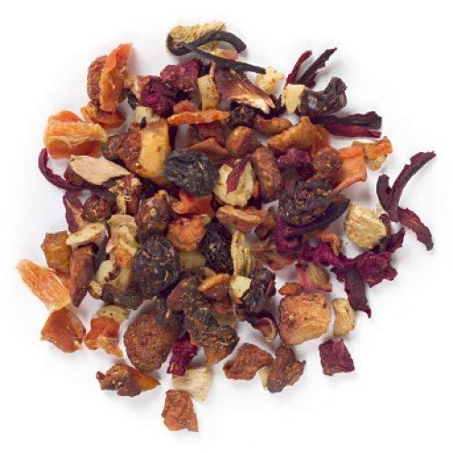 Picture parfait. The ancient Chinese used it in medicine. The medieval Europeans traded for it along the Silk Road. And today we love it in pies, sauces, muffins or just plain, dipped in a little sugar. But the best way to eat rhubarb is with sweet, ripe strawberries. Like in this refreshingly fruity, deep red tisane. It tastes as bright and juicy as a fresh-picked berry, with a tart rhubarb punch and a subtle hint of yogurt creaminess. We love it hot or iced, or as the base for sweet, zippy sangria. Now thats a beautiful thing. Caffeine-free. Best served: Hot Tea / Iced Tea / Tea Pop. Ingredients : Apple, hibiscus, raisins, carrot, yogurt bits (milk powder, sugar, maltodextrin, modified starch, citric acid), beetroot, strawberry, rhubarb, natural and artificial flavouring. Allergens: milk