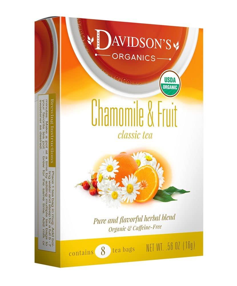 - Chamomile & Fruit combines citrus essence with a floral base of rosehips and chamomile. Davidson's Chamomile & Fruit is a fruity blend with light, floral undertones.
