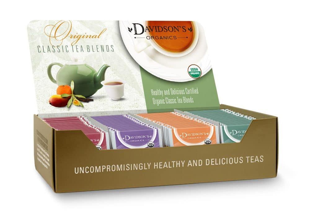 - Our most exclusive and widest selection of 100 assorted Classic tea bags. Davidsons Classic Teas offer a broad selection of traditional black teas, both decaffeinated and with caffeine, fruit and spice flavored teas, and classic herbal blends. Perfect for table service or as a gift.