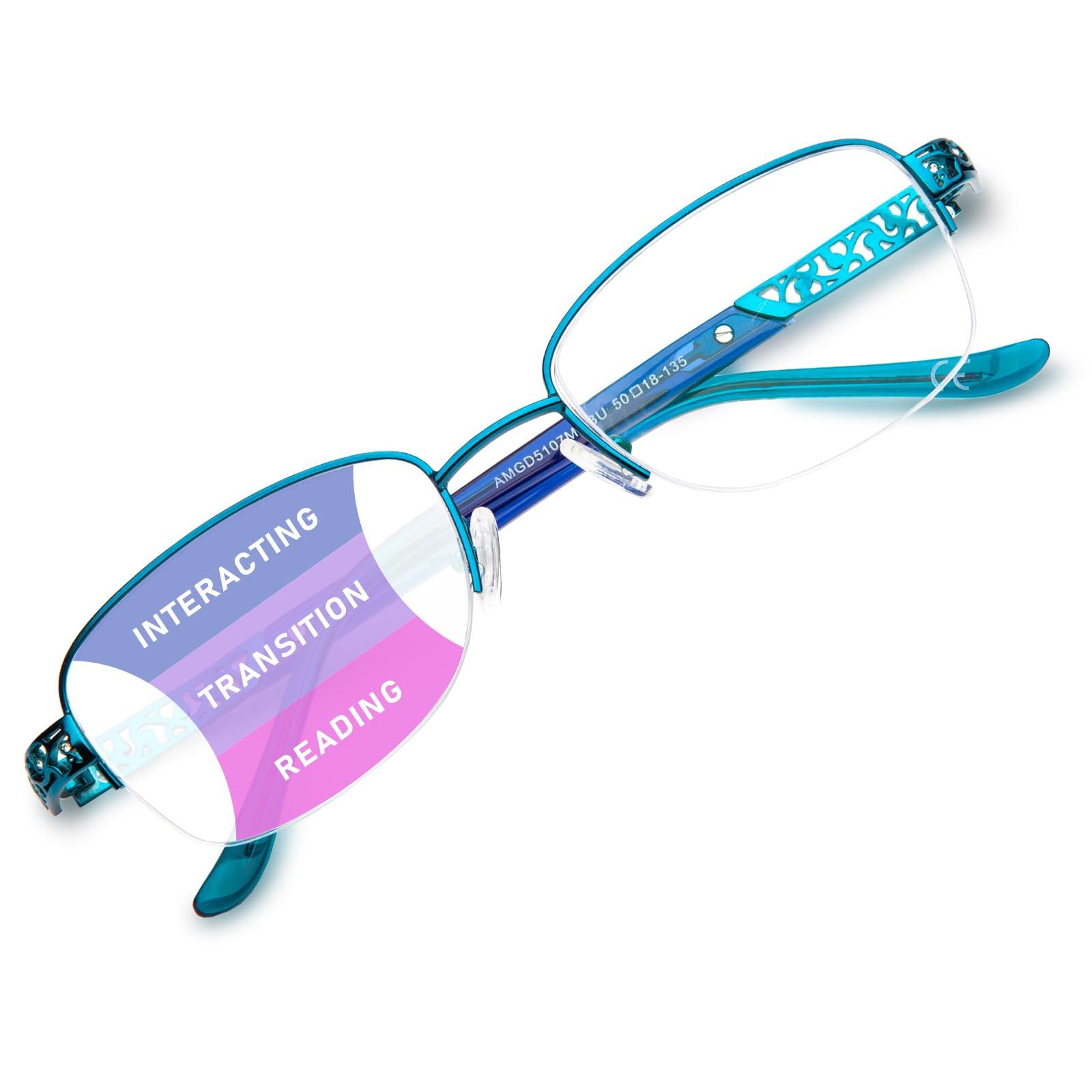- Metal Semi-rimless GlassesThe trifocal readers adopts metal half frame design, making it look stylish and fashionable. This transition reading glasses come with nose pad, comfortable to wear.