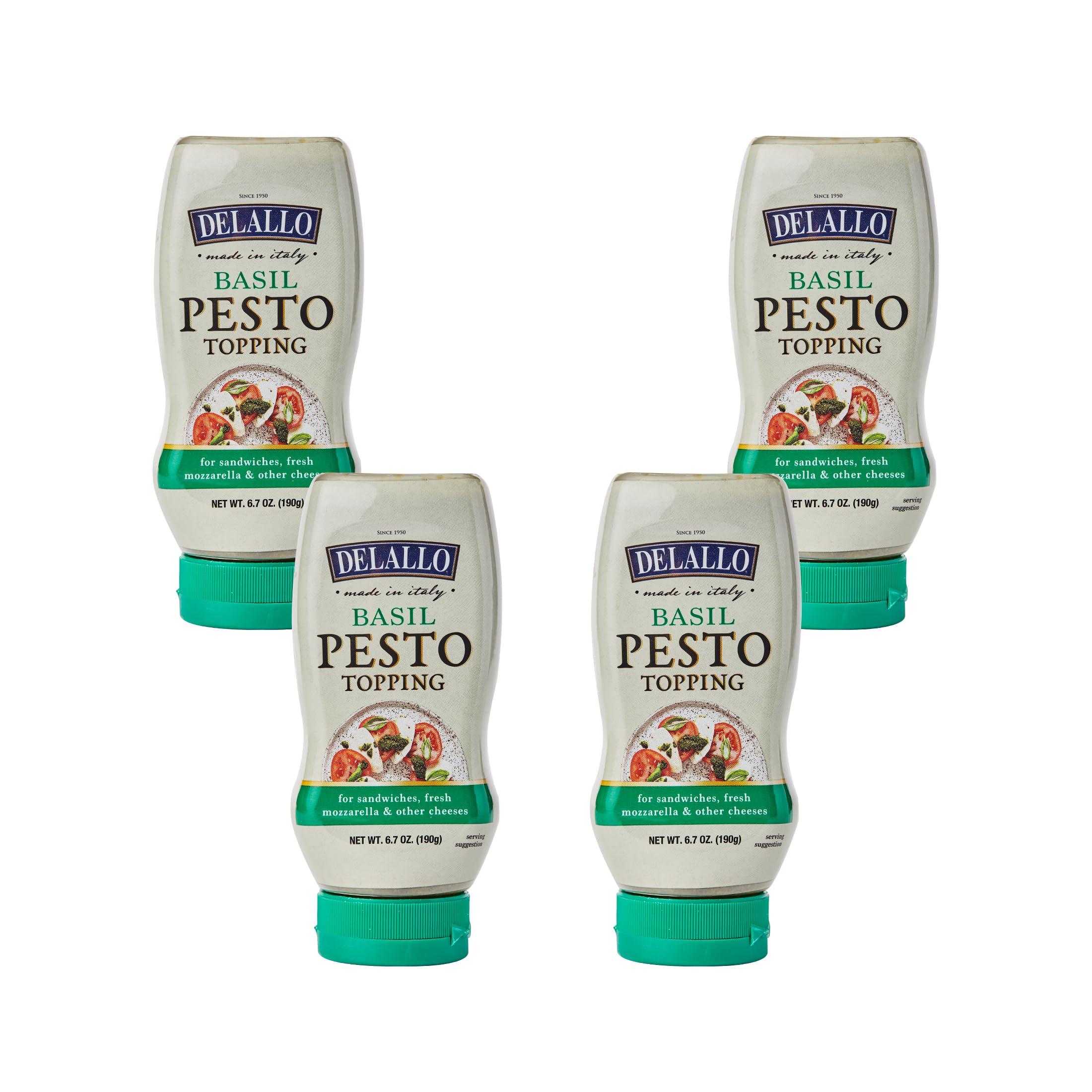 DeLallo Basil Pesto Squeeze Bottle is a ready-to-use condiment made in Italy and features fresh and flavorful handpicked Ligurian basil, a hint of garlic and nutty Parmesan cheese. The convenient squeeze bottle makes it easy to bring a burst of fresh, fragrant basil to a variety of your favorite dishes. This condiment is best enjoyed raw with no need to heat which makes it great as an accent or finish to everything from sandwiches and grilled meats to pasta and pizza.