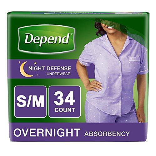 Sleep through the night with confidence in the trusted protection of Depend Night Defense Overnight Underwear for Women. Specifically designed for nighttime use to help with a restful night's sleep, this overnight incontinence underwear is made for faster absorption that also traps and locks in odor. This incontinence pant has more absorbent materials than Depend FIT-FLEX Underwear with maximum absorbency to deliver outstanding nighttime protection in an adult diaper. The form-fitting LYCRA strands help ensure a comfortable fit for lightweight, heavy protection against overactive bladder leakage while lying down. All Depend incontinence products for women are latex-free and contain no lotions or fragrances. Depend Night Defense Underwear is FSA-eligible in the US only. Size small/medium fits women with a 28-40 inch waist and who weigh 115-190 lbs.