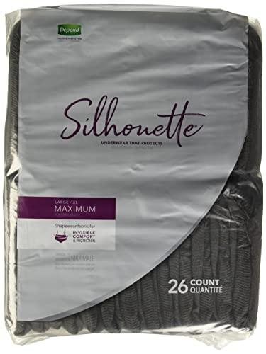 With a premium shapewear fabric, specifically designed to fit close to your body and feel like real underwear, Depend Silhouette Womens Incontinence Underwear has the protection you need with the comfort youve been waiting for. Our smoothest fabric ever this bladder control or postpartum bladder leak underwear is sleek, feminine and discreet under clothing, unlike bulky adult diapers. Made with an ultra soft liner that is designed to be gentle on skin, Depend for women is also unscented and lotion-free. The absorbent underwear provides Trusted Protection that instantly locks away wetness and odors to help keep you protected from leaks so you can stay confident as you take on the day. Depend Silhouette Incontinence Underwear for Women is now available in three sizes small (28-36 waist), medium (34-44 waist), large/extra-large (42-54 waist), and in an exclusive range of feminine colors black, pink, teal, lavender and berry. Depend adult incontinence products always ship in a discreet box for your privacy. This product is FSA-eligible in the U.S. Packaging delivered to you may vary from the images shown.