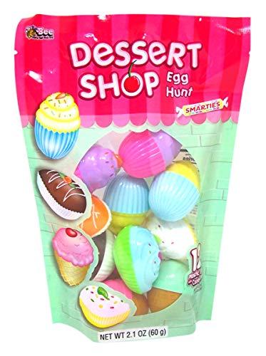 Includes 12 Dessert Design Eggs - Eggs are Filled with Smarties Candy - Features Pastries, Cupcake, and Ice Cream Cone Designs - Eggs are Made of Plastic and are 2 1/2 Inch (L) - These are Perfect for an Easter Egg Hunt, Giving Out as Party Favors, or Using as Easter Basket Stuffers