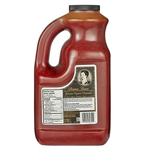 Diana Sauce Gourmet Original, is a moderately viscous, spicy, red tomato based BBQ Sauce, containing unique sweet sour characteristics. Heat in a slow cooker and serve with chicken nuggets or a mild cheese. Use as a base for a signature sauce by adding ingredients such as chopped onion, green pepper, or a host of other herbs and spices. Great dip for bar snacks like meatballs, egg rolls, Open plastic containers and measure product according to recipe usage directions. One 3.78L bottle of Diana Sauce Original BBQ. Heat in a slow cooker and serve with chicken nuggets or a mild cheese. Use as a base for a signature sauce by adding other ingredients. Imported from Canada