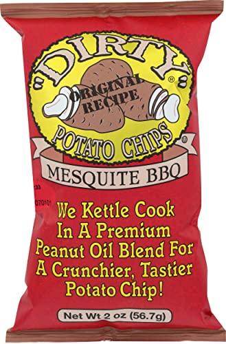Dirty Potato Chips, mesquite bbq are kettle cooked one batch at a time and use premium ingredients for a crunchier, tastier chip. These kosher, gluten-free chips are kettle cooked in a peanut oil blend and they do not contain preservatives or artificial colors, flavors or sweeteners. Each bag of Dirty Potato Chips, mesquite bbq contains 2 ounce of product.