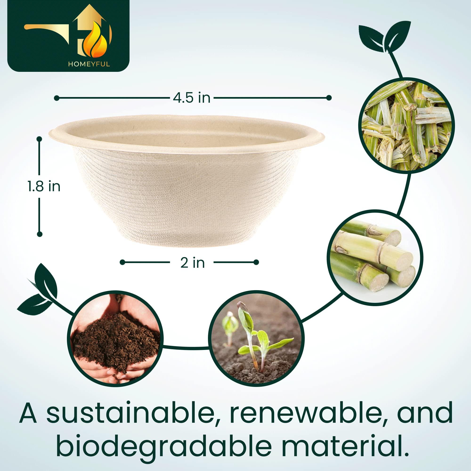 Homeyful Disposable Paper Bowls - 100pack 8oz Compostable Paper Bowls- For Condiments, Ice Cream, Chili, Dessert and Chip Dips- Made of Natural Sugarcane Bagasse
